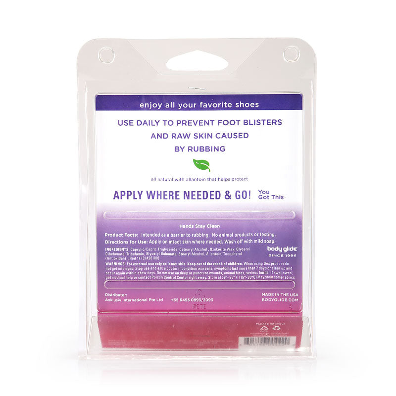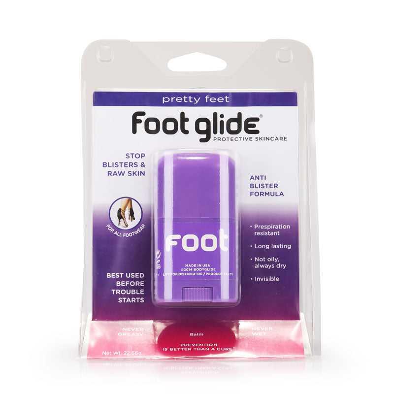 Foot Glide protects your feet and toes against rubbing that causes blisters, chafing, raw skin, and hot spots. The advanced formula is a dry, invisible, non-greasy barrier. Stay active, pain free.