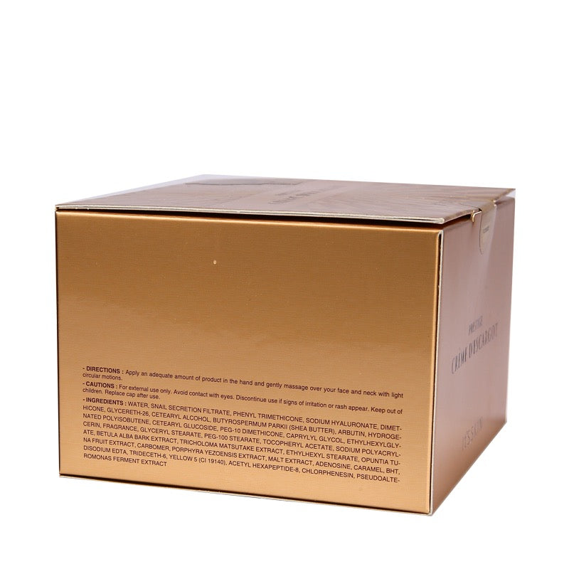 This luxury face cream contains Musin essence that extracted from snail mucus,an ingredient with superior cell restoration,hydration and nourishment effects.It also contains EGF(epidermal growth factor) which helps to rejuvenate damaged and mature skin for young,smooth and dewy appearance.Snail is known to protect itself by recovering scars or cuts in short period of time.Its repairing function inspires It's Skin to produce a series of D'escargot products which are suitable for most skin types.